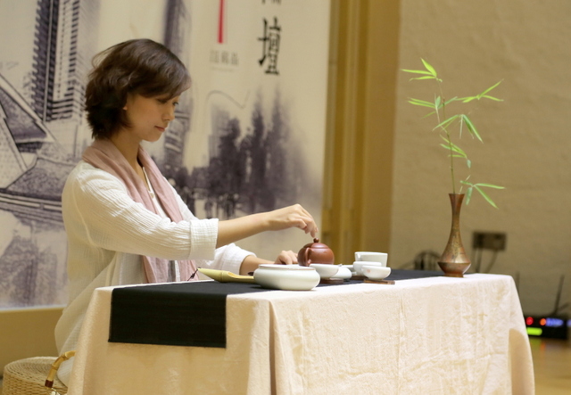 大益茶道院老師在“兩岸文化交流論罎”上演示大益八式