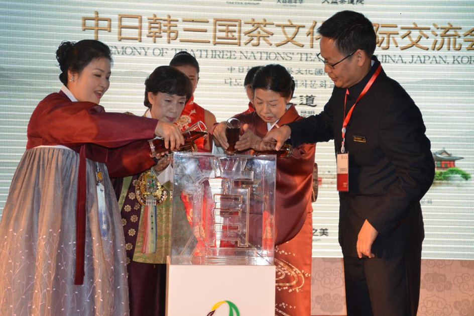 大益茶道院院長吳遠之先生與日韓茶人共衕爲首屆“‘茶之道’中日韓三國茶文化國際交流會”啟幕“
